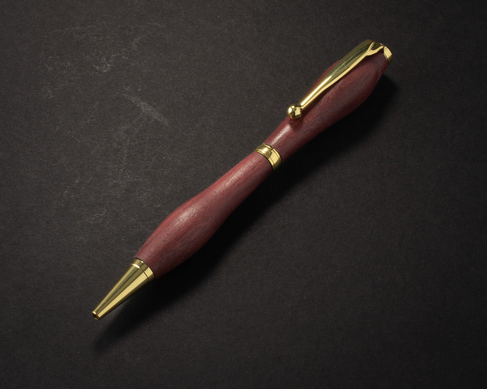 The Amethyst Regent — Slimline, Gold Hardware is a masterpiece forged from the captivating purpleheart wood, celebrated for its rich violet tones and enduring strength. Its sleek, slimline silhouette is accented with gleaming gold hardware, evoking a regal presence that blends natural beauty with refined elegance. More than just a piece, it tells a story of craftsmanship and distinction, perfect for those who carry their legacy with quiet confidence and style.