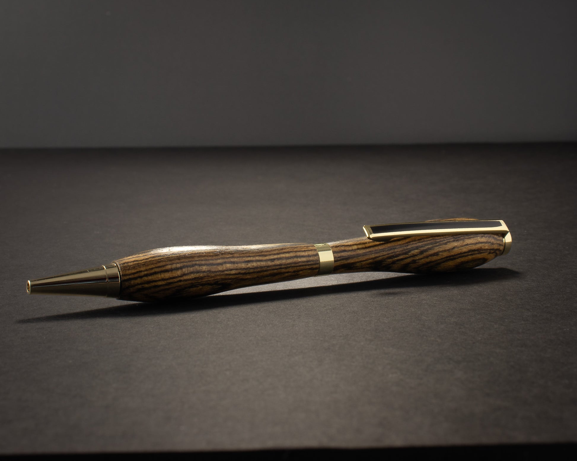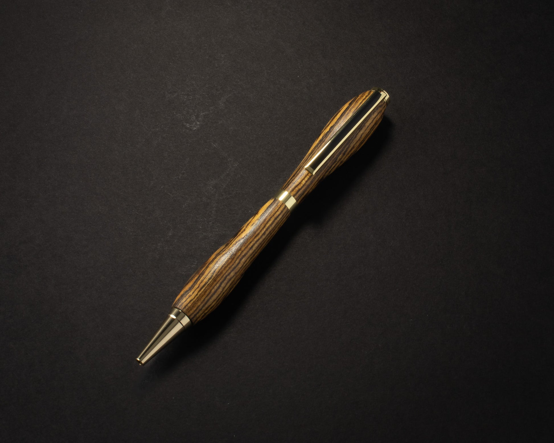 The Aureus Stripe pen tells a story of striking contrasts and vibrant rhythm. Its golden zebrawood body pulses with bold, dark veins that capture the eye, while polished gold hardware adds a touch of refined elegance. This slimline masterpiece is more than a writing instrument—it’s a statement of presence and individuality for those who want their words to resonate as powerfully as their style.