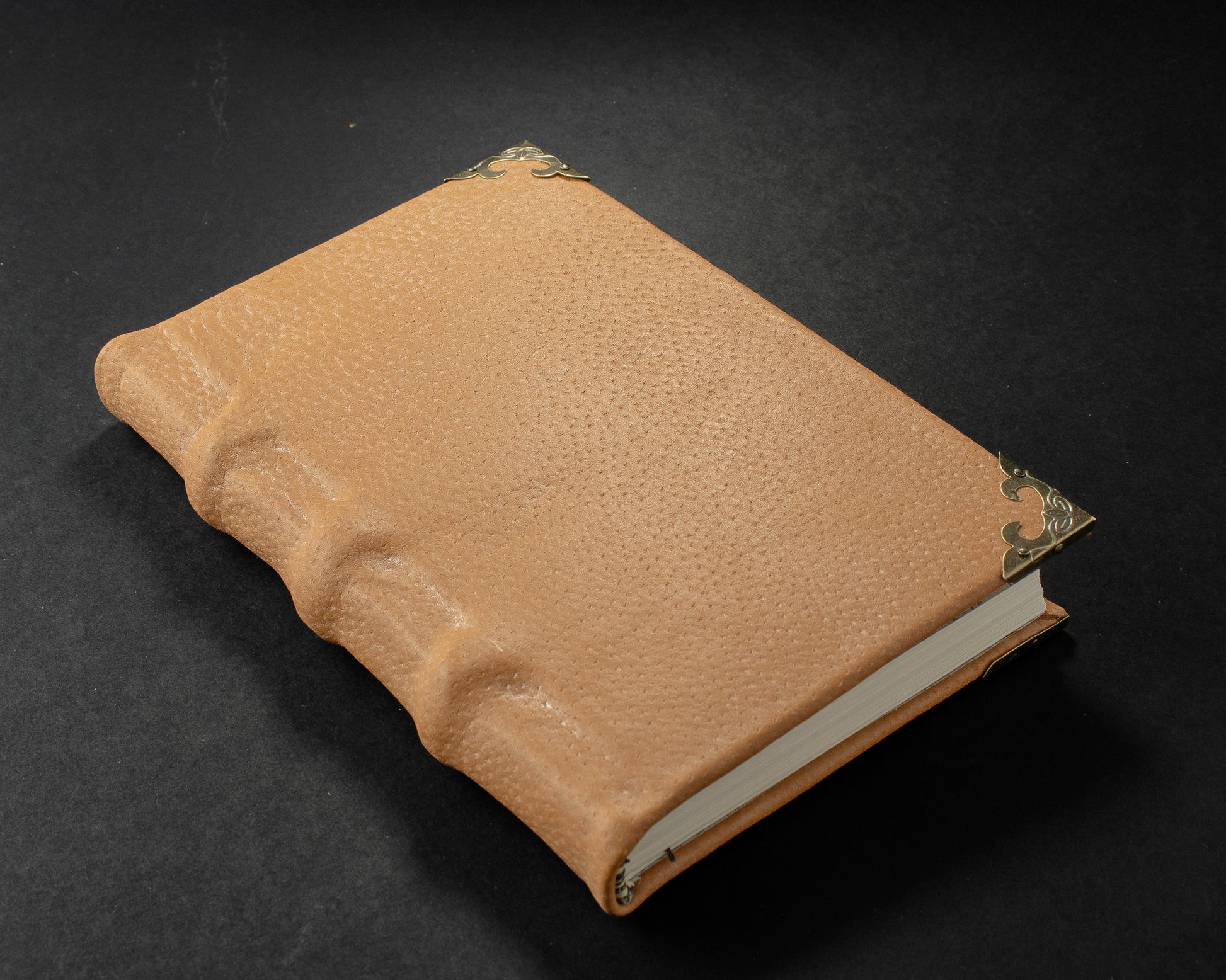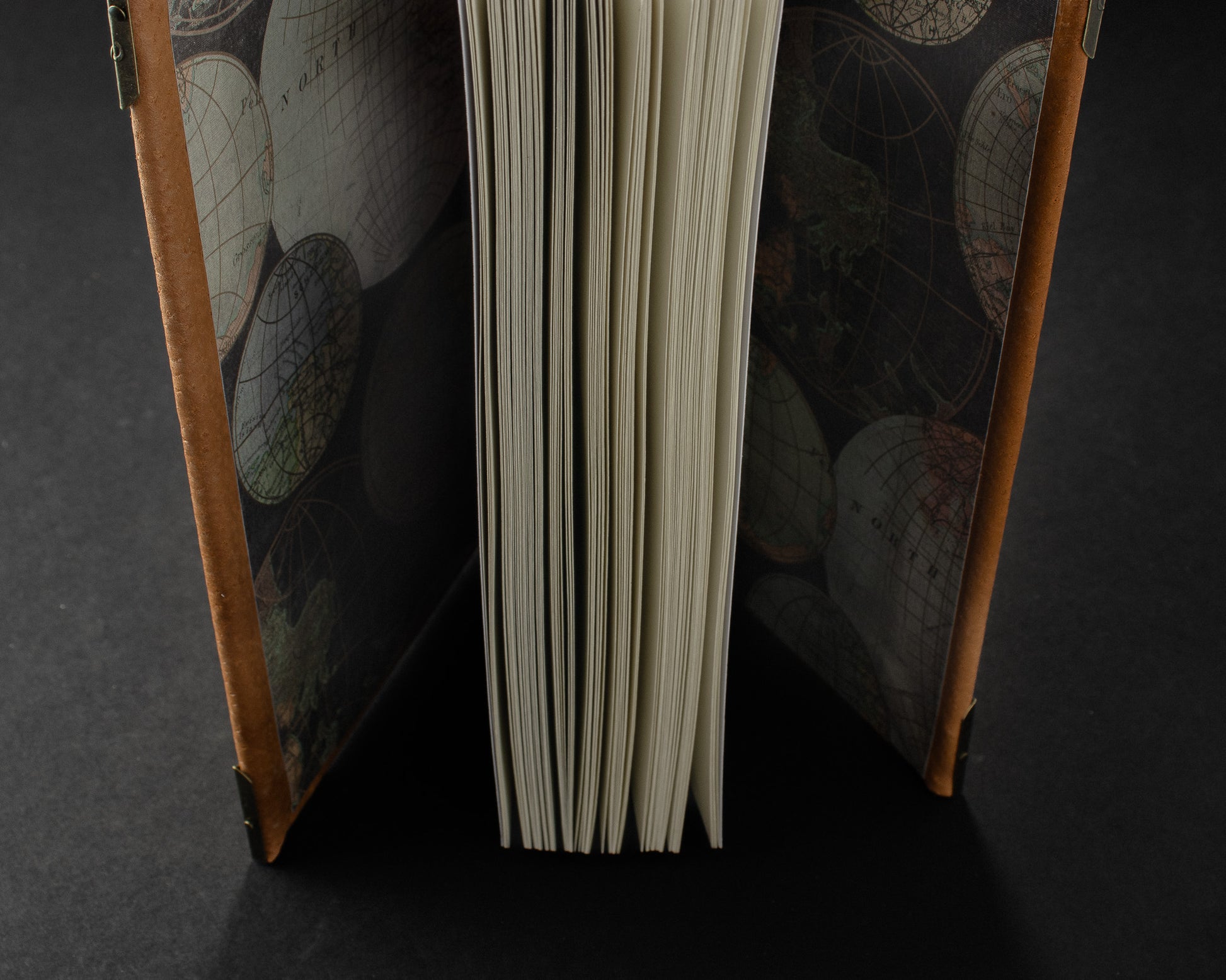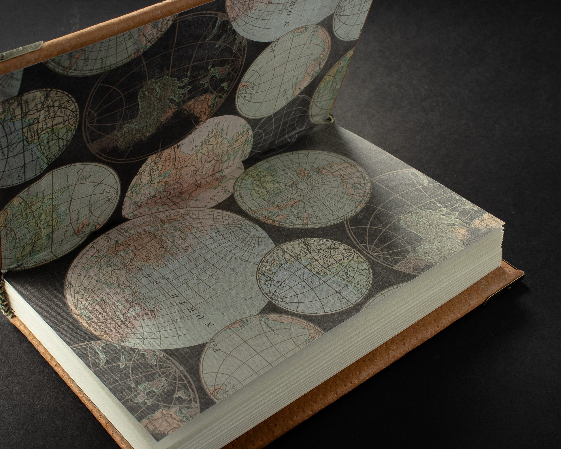 The Cartographer’s Heirloom is a journal crafted from pale pigskin, hand-stitched over raised cords—a testament to timeless artistry. Its soft, tactile cover carries the natural grain of fine leather, evoking the feel of aged vellum. Inside, parchment-weight pages lie blank and unruled, ready to hold stories, sketches, and dreams destined to be passed down. Antique world-map endpapers quietly tell the tale of explorers and adventurers, while brass-corner protectors guard both beauty and legacy. Every stitch binds a tradition, inviting you to chart your own journey.