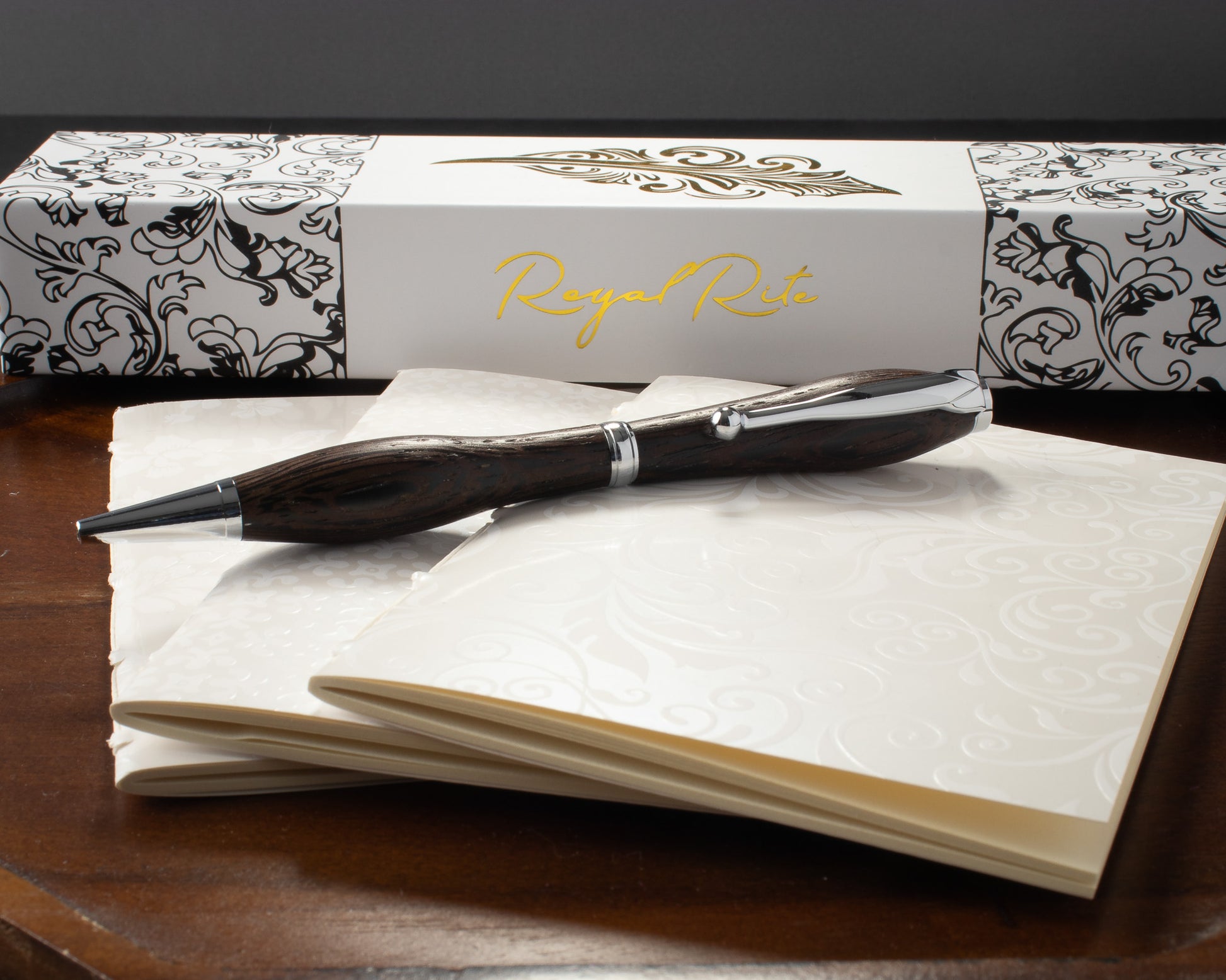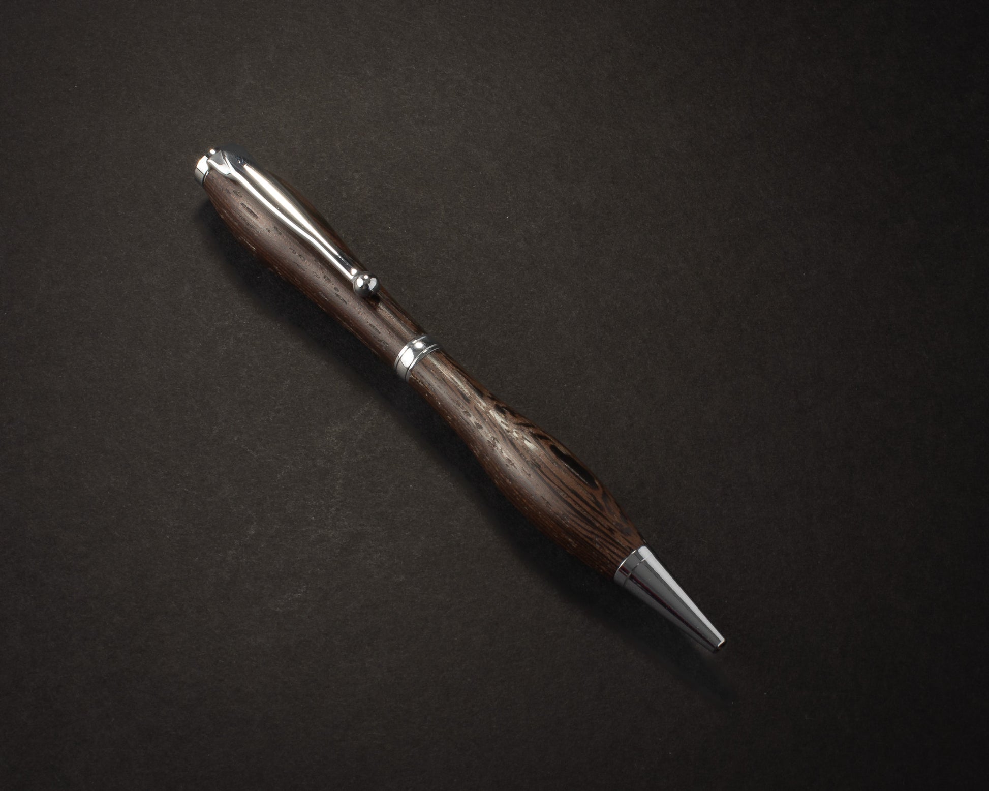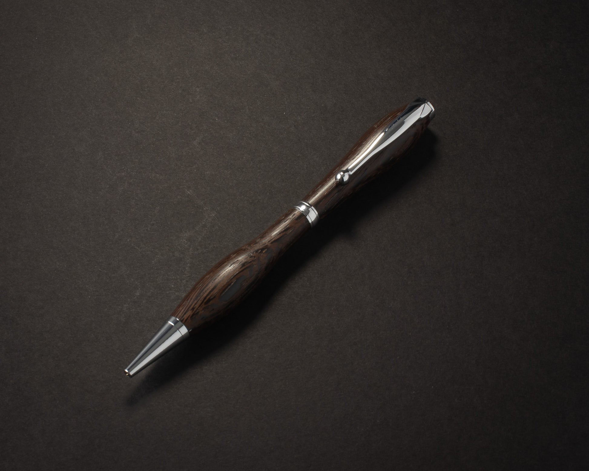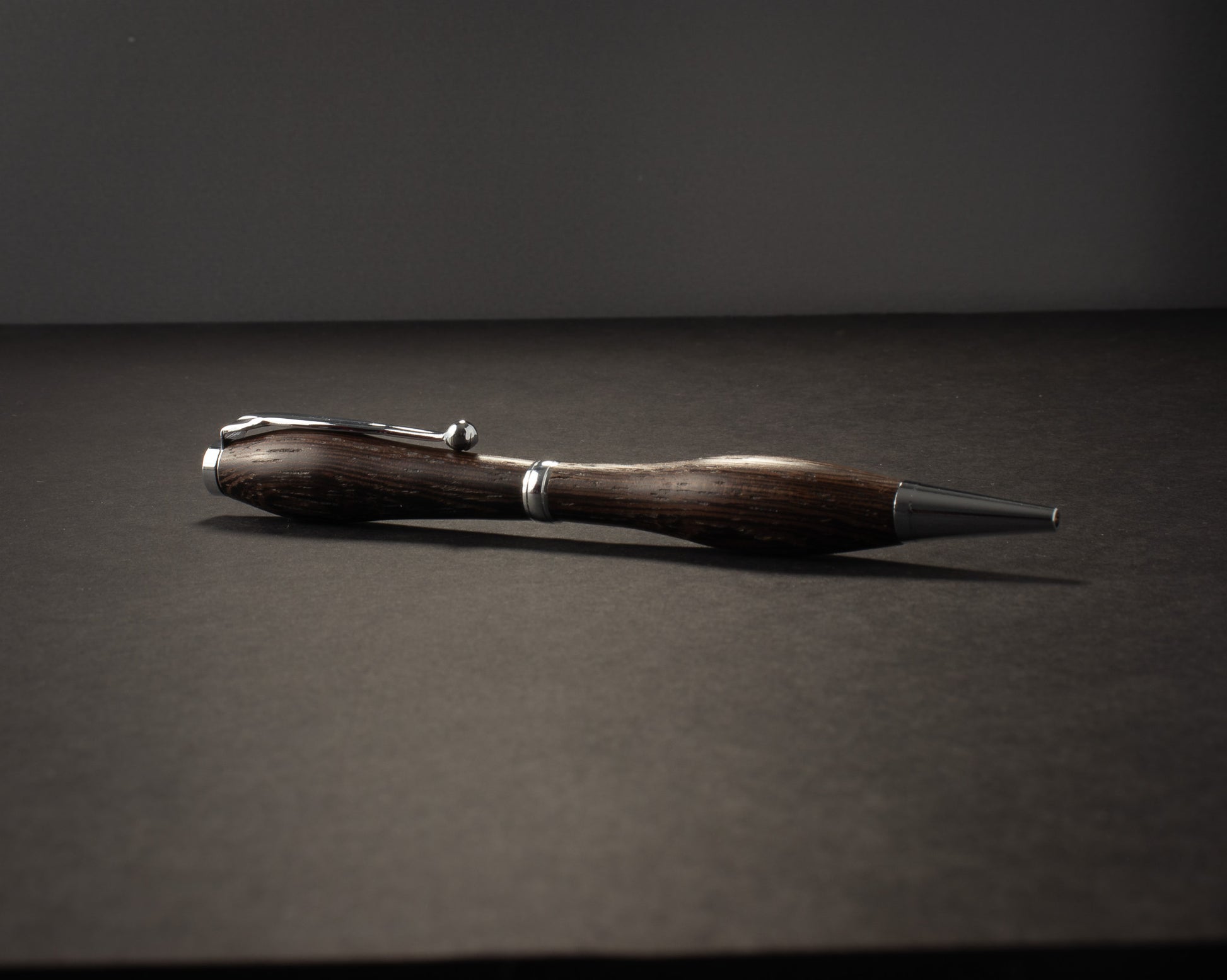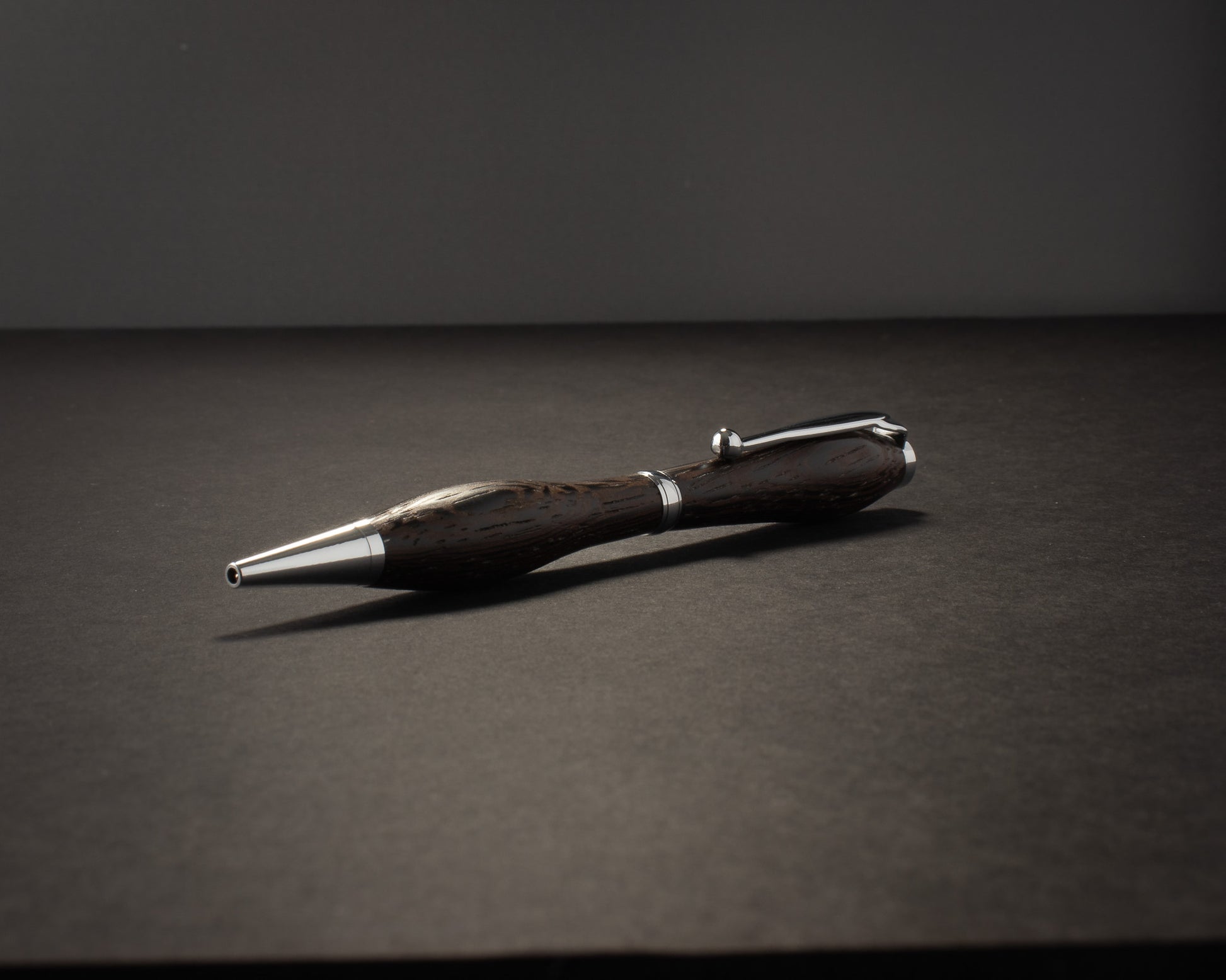The Shadow Vein invites you to experience writing as an art. Crafted from dark wood streaked with pale veins, its slender silhouette embodies a striking balance of light and shadow. The sleek chrome hardware complements the natural grain, marrying polish with raw beauty. This pen is crafted for those who seek depth not just in their words, but in the very instrument they hold. Every stroke becomes a story waiting to be told.